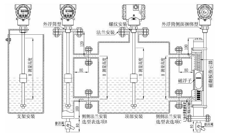 過(guò)程連接:DN50、DN80、DN100法蘭或M18×1.5、M20×1.5、G3/4"陽(yáng)螺紋或特殊定制